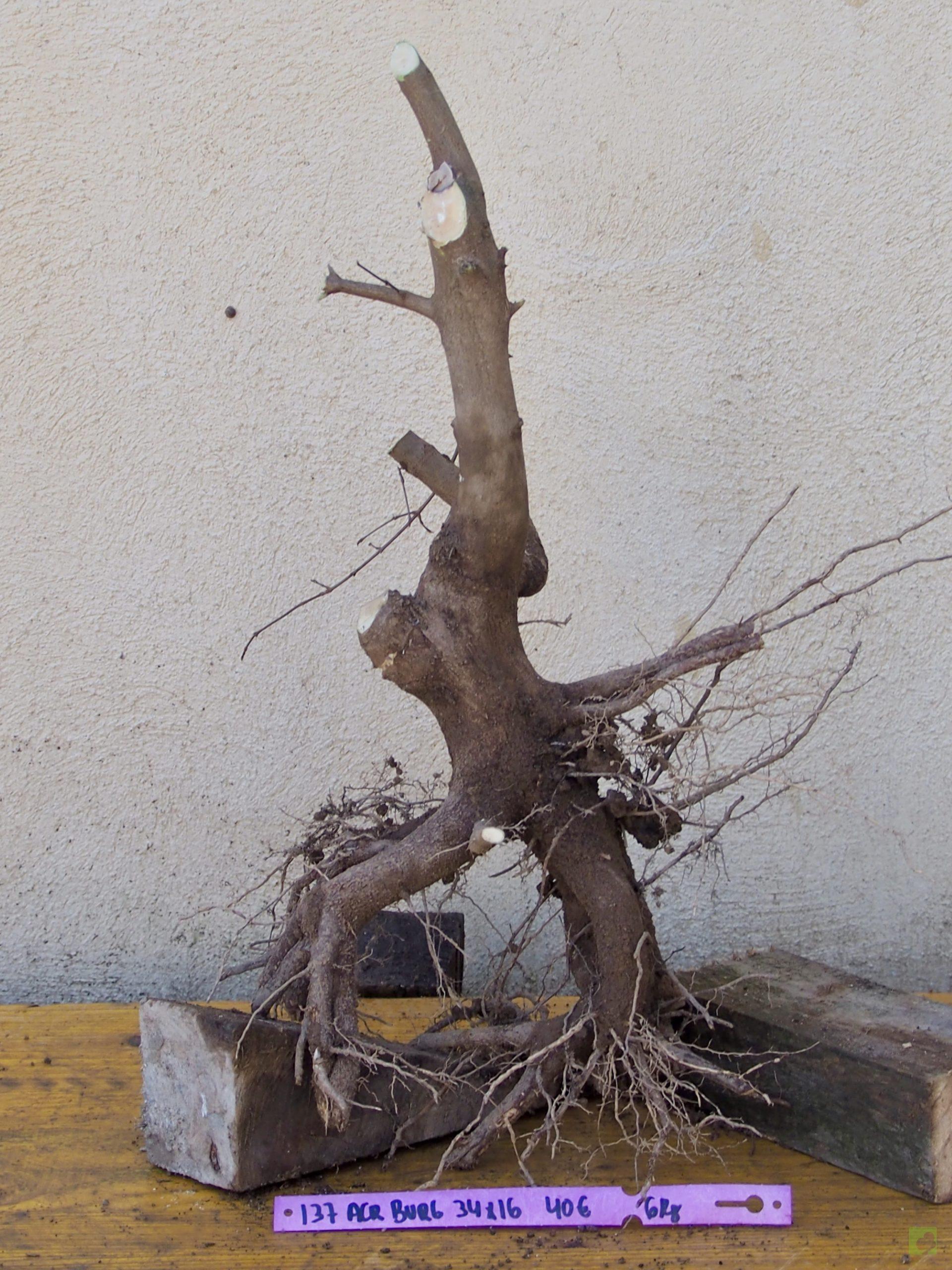 Árbol de hoja caduca. Crecimiento muy rápido. Hojas con tres lóbulos a modo de tridente, de ahí su nombre de Arce tridente. Color verde y en otoño anaranjadas o incluso rojas. Sus frutos son alados para facilitar su dispersión a través del viento.