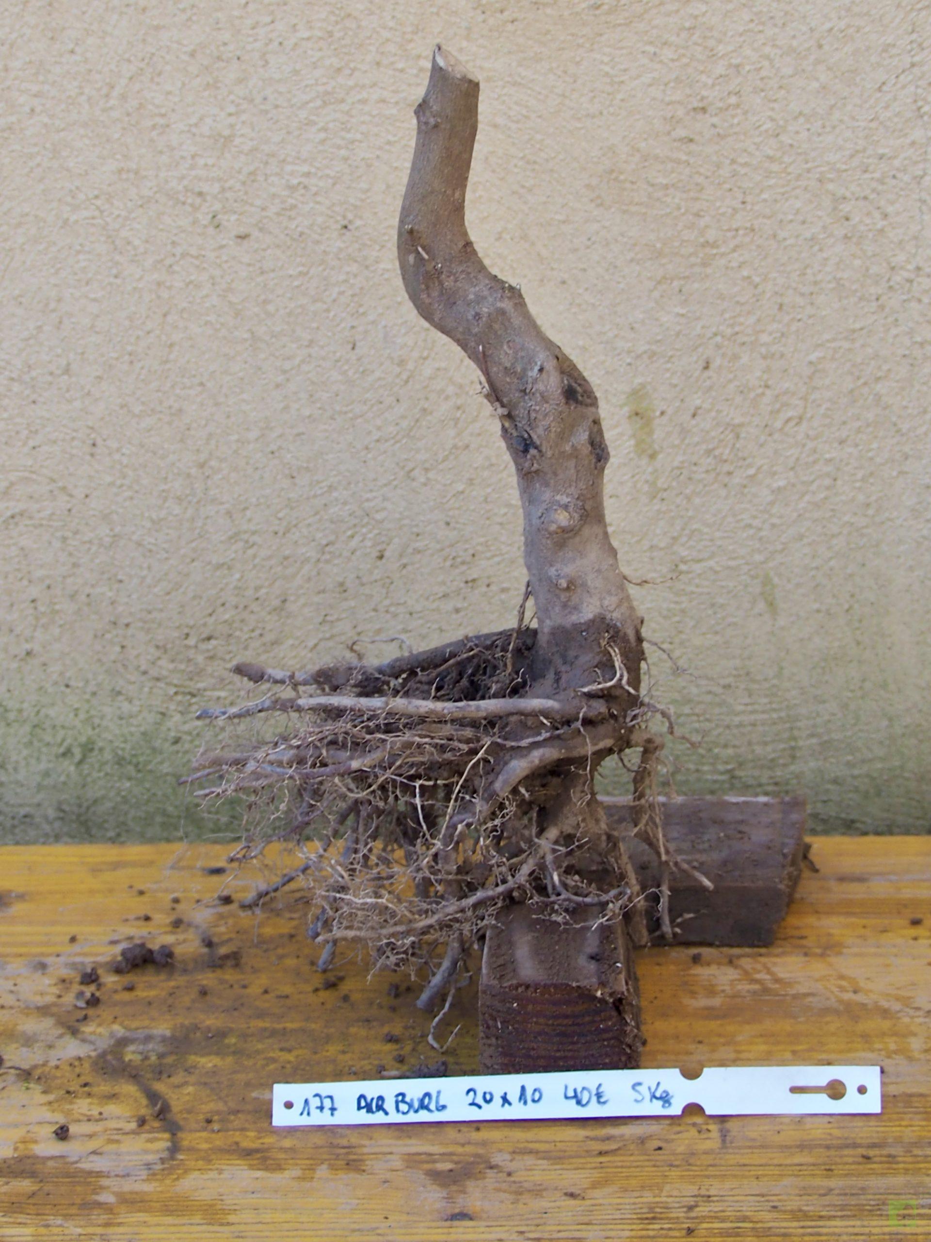 Árbol de hoja caduca. Crecimiento muy rápido. Hojas con tres lóbulos a modo de tridente, de ahí su nombre de Arce tridente. Color verde y en otoño anaranjadas o incluso rojas. Sus frutos son alados para facilitar su dispersión a través del viento.