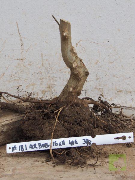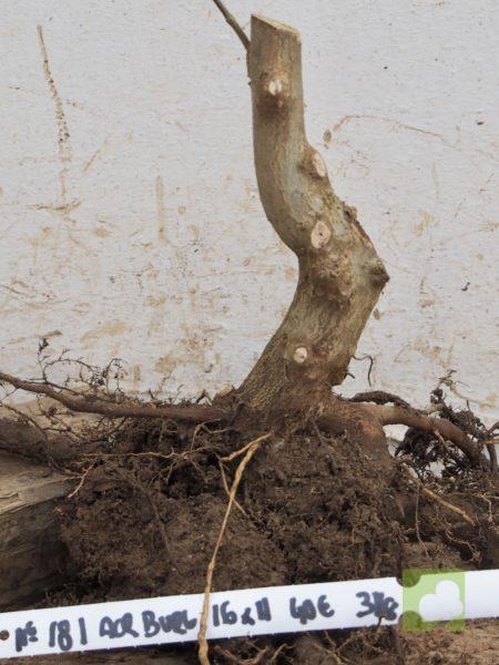 Árbol de hoja caduca. Crecimiento muy rápido. Hojas con tres lóbulos a modo de tridente, de ahí su nombre de Arce tridente. Color verde y en otoño anaranjadas o incluso rojas. Sus frutos son alados para facilitar su dispersión a través del viento.