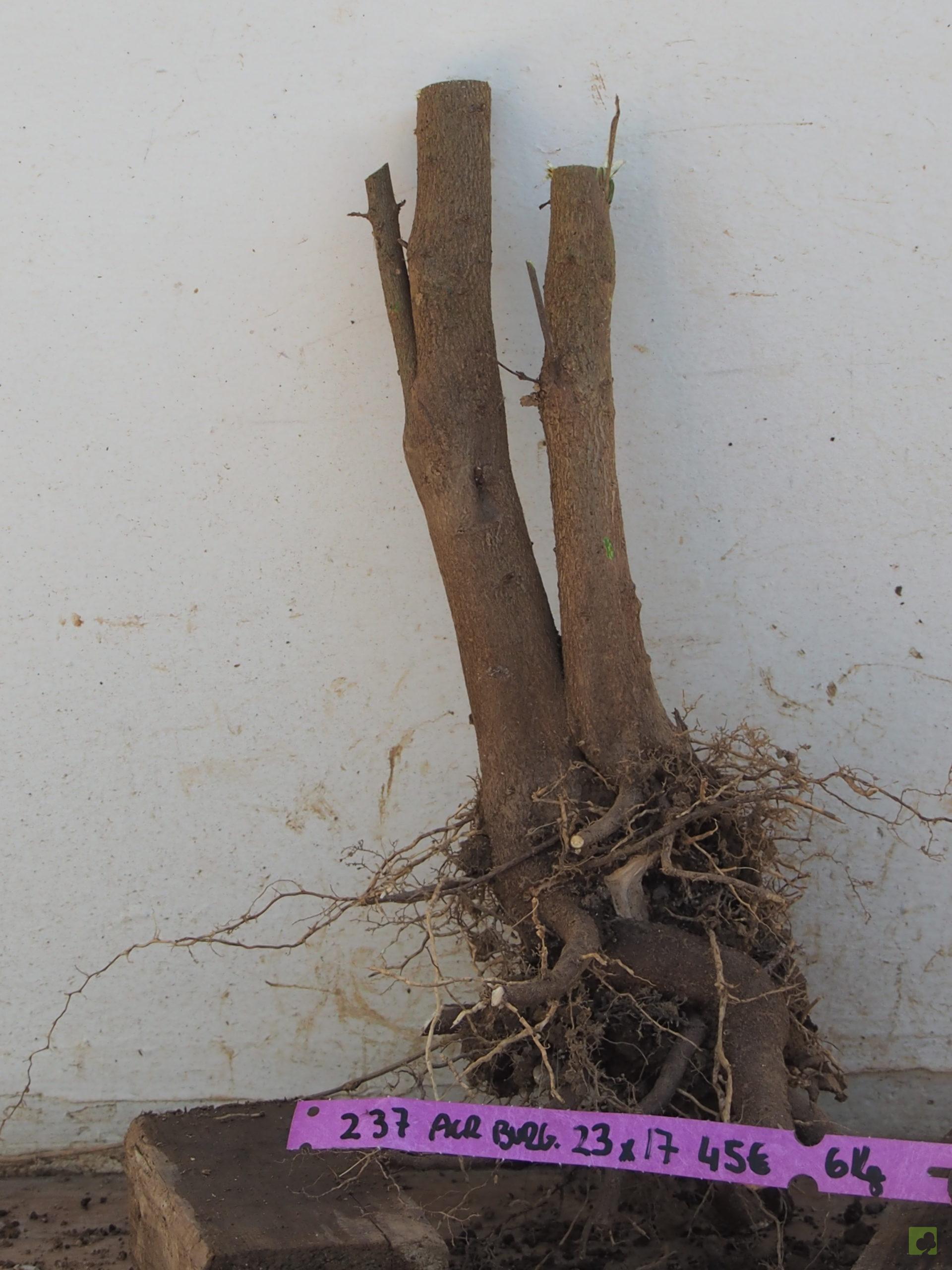 Arce Burgeriano de doble tronco a raíz desnuda.