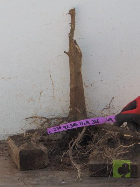 Árbol de hoja caduca. Crecimiento muy rápido. Hojas con tres lóbulos a modo de tridente, de ahí su nombre de Arce tridente. Color verde y en otoño anaranjadas o incluso rojas. Sus frutos son alados para facilitar su dispersión a través del viento.