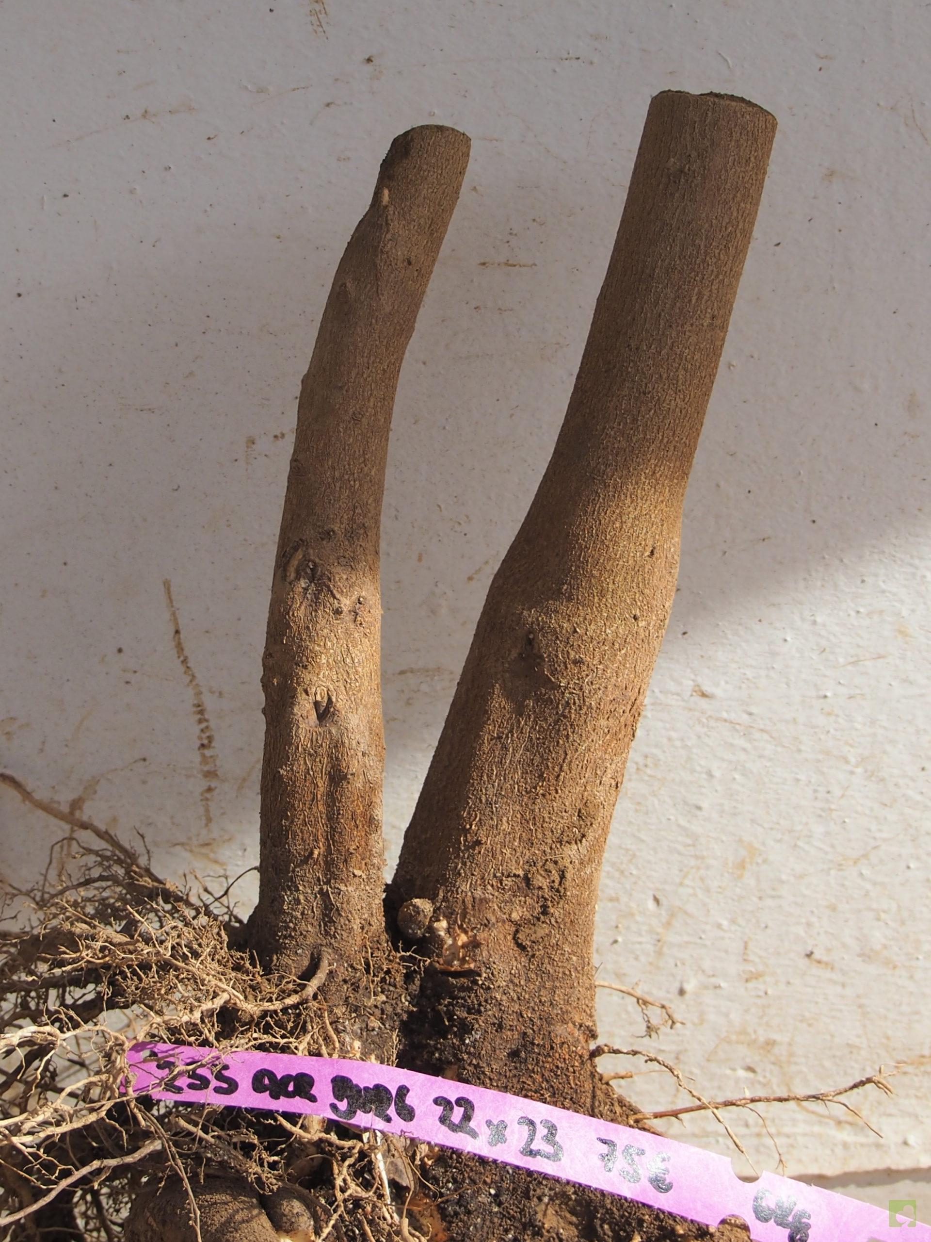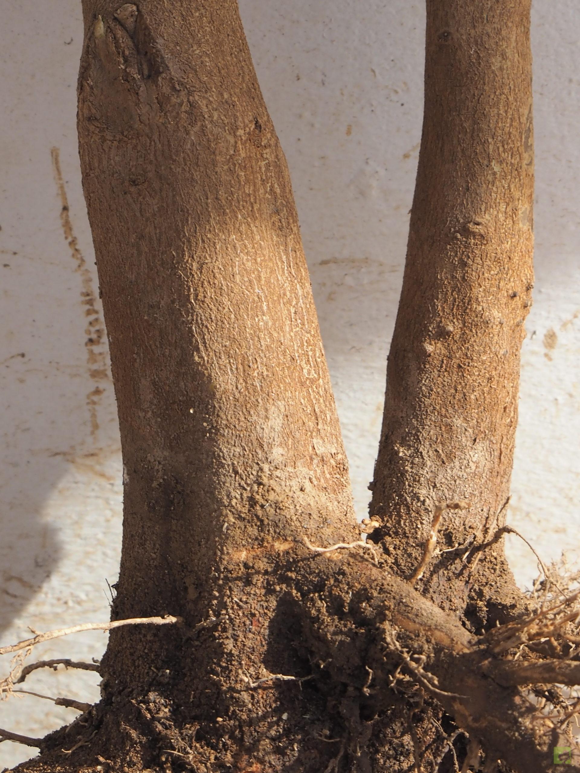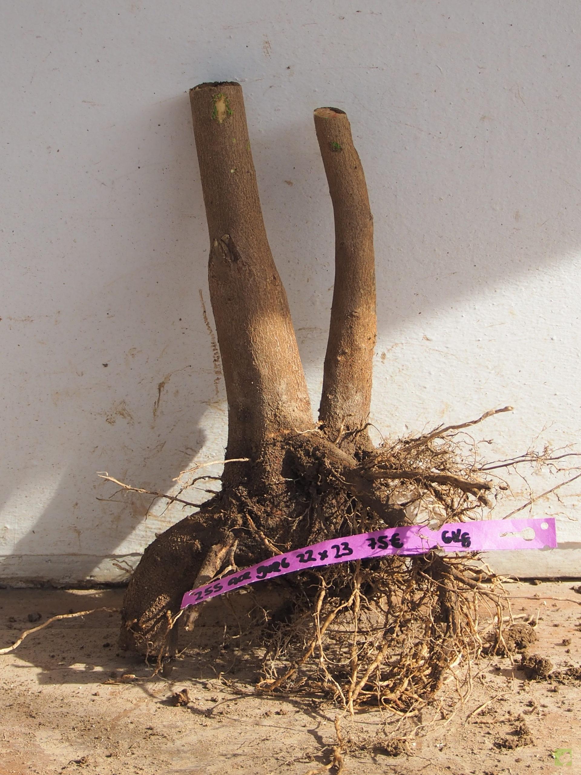 Árbol de hoja caduca. Crecimiento muy rápido. Hojas con tres lóbulos a modo de tridente, de ahí su nombre de Arce tridente. Color verde y en otoño anaranjadas o incluso rojas. Sus frutos son alados para facilitar su dispersión a través del viento.