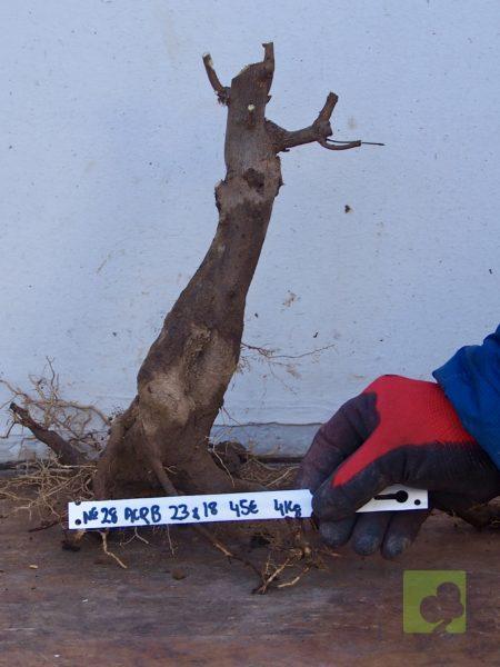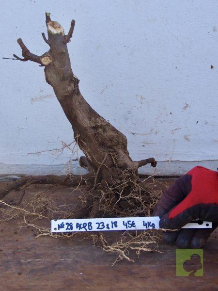 Árbol de hoja caduca. Crecimiento muy rápido. Hojas con tres lóbulos a modo de tridente, de ahí su nombre de Arce tridente. Color verde y en otoño anaranjadas o incluso rojas. Sus frutos son alados para facilitar su dispersión a través del viento.