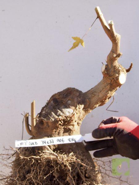 Árbol de hoja caduca. Crecimiento muy rápido. Hojas con tres lóbulos a modo de tridente, de ahí su nombre de Arce tridente. Color verde y en otoño anaranjadas o incluso rojas. Sus frutos son alados para facilitar su dispersión a través del viento.