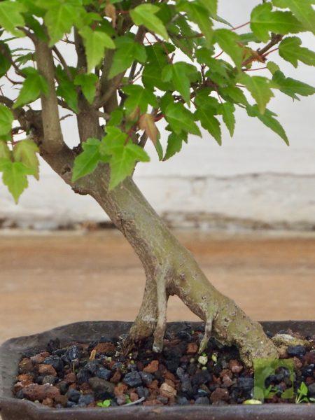 – Trasplante: Cada 2 años, y los árboles muy jóvenes anualmente. Se efectúa justo después de la caída de las hojas o antes de la brotación de las yemas. Durante el trasplante se deben las raíces podridas y eliminar bien toda la tierra vieja. Cuando la base del tronco esté limpia y a la vista, se podan completamente las raíces que nazcan directamente de dicha base. En los sucesivos trasplantes de nuestro arce debemos ir eliminando las raíces que crecen hacia abajo, dejando sólo las que crecen en horizontal, conseguiremos de esta forma una interesante base de raíces. Tras la poda de raíces está débil, por lo que no le conviene sufrir heladas. Por este motivo, se recomienda hacerlo a finales de invierno o principios de primavera.