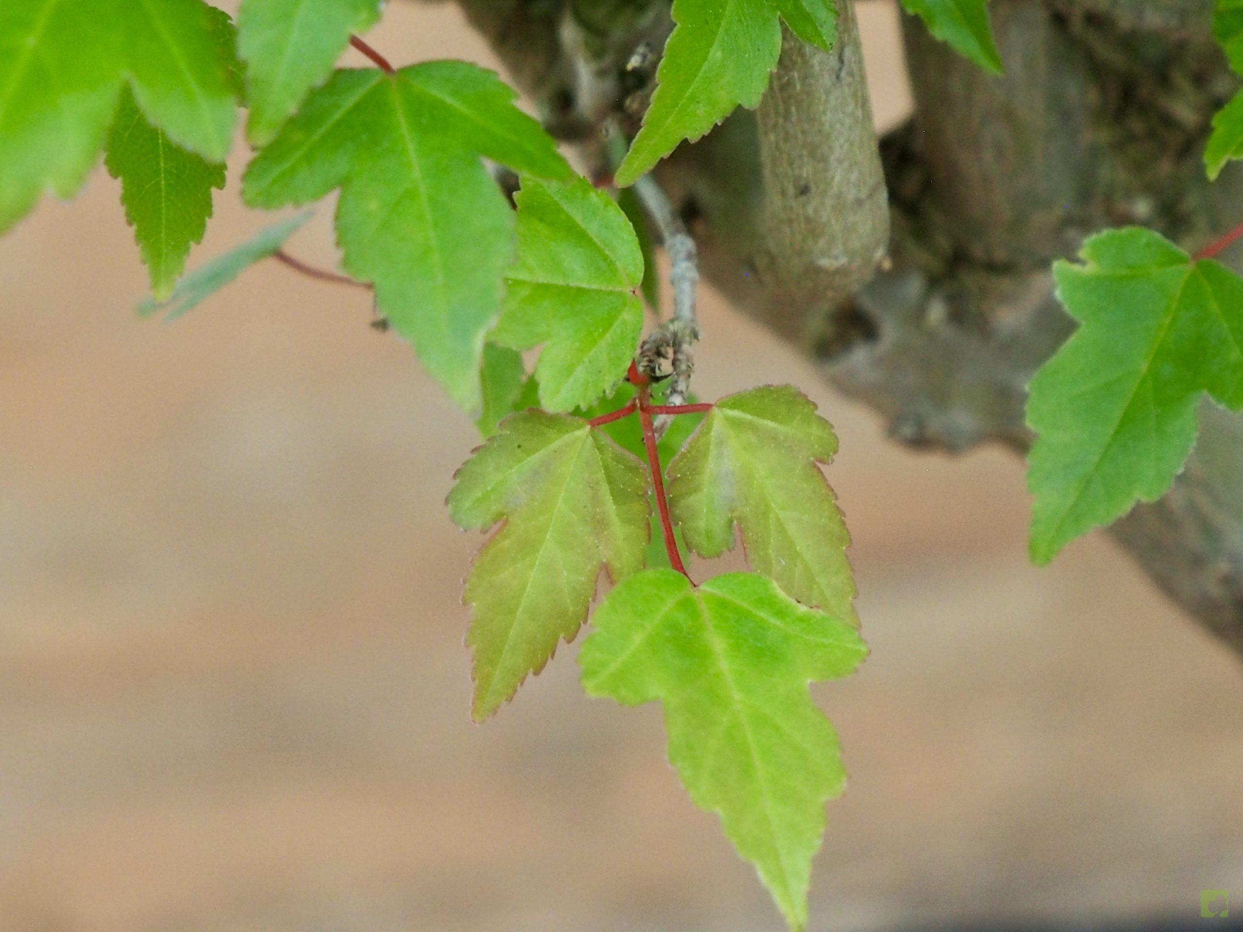 – Poda: Debido a que las yemas son opuestas, los brotes serán dobles y, por tanto, debemos fijarnos en la dirección que nos interesa para la nueva rama y eliminar el brote no deseado. Esta técnica nos permitirá un aumento de ramificación en la dirección elegida. Las ramas, al igual que el tronco, son robustas por lo que siempre debemos eliminar las ramas toscas y gruesas, dejando las más finas. Este es un proceso continuo que debemos repetir estación a estación ya que es el modo de lograr una ramificación fina y delicada. En el segundo año, también en invierno, deben podarse las ramas que nazcan directamente del tronco y afeen la silueta del árbol, utilizando una buena pasta selladora. Crece rápido y obliga a un despunte frecuente, de 2 yemas. Hacer 3 ó 4 despuntes en el transcurso del verano. Esto permite obtener unos arbolitos bien tupidos. Es muy peligroso para la vida del arce podar ramas gruesas fuera del invierno. En verano puede realizarse el defoliado total o parcial sin demasiados problemas, siempre que no se lleve a cabo demasiado tarde dentro de la estación. Por otra parte, es necesario, al principio, dejar que las ramas bajas crezcan libremente para que así engorden y lograr un crecimiento adecuado de esta zona baja.