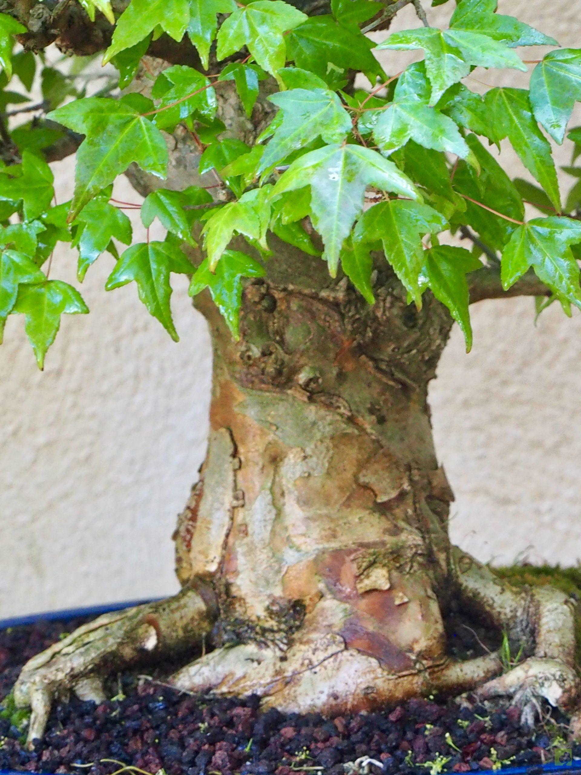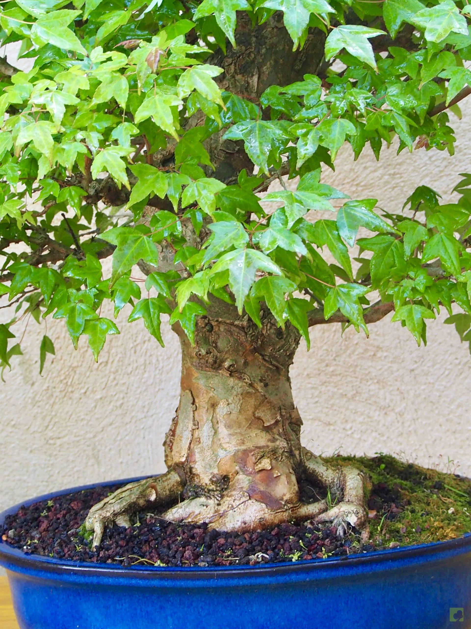 – Trasplante: Cada 2 años, y los árboles muy jóvenes anualmente. Se efectúa justo después de la caída de las hojas o antes de la brotación de las yemas. Durante el trasplante se deben las raíces podridas y eliminar bien toda la tierra vieja. Cuando la base del tronco esté limpia y a la vista, se podan completamente las raíces que nazcan directamente de dicha base. En los sucesivos trasplantes de nuestro arce debemos ir eliminando las raíces que crecen hacia abajo, dejando sólo las que crecen en horizontal, conseguiremos de esta forma una interesante base de raíces. Tras la poda de raíces está débil, por lo que no le conviene sufrir heladas. Por este motivo, se recomienda hacerlo a finales de invierno o principios de primavera.