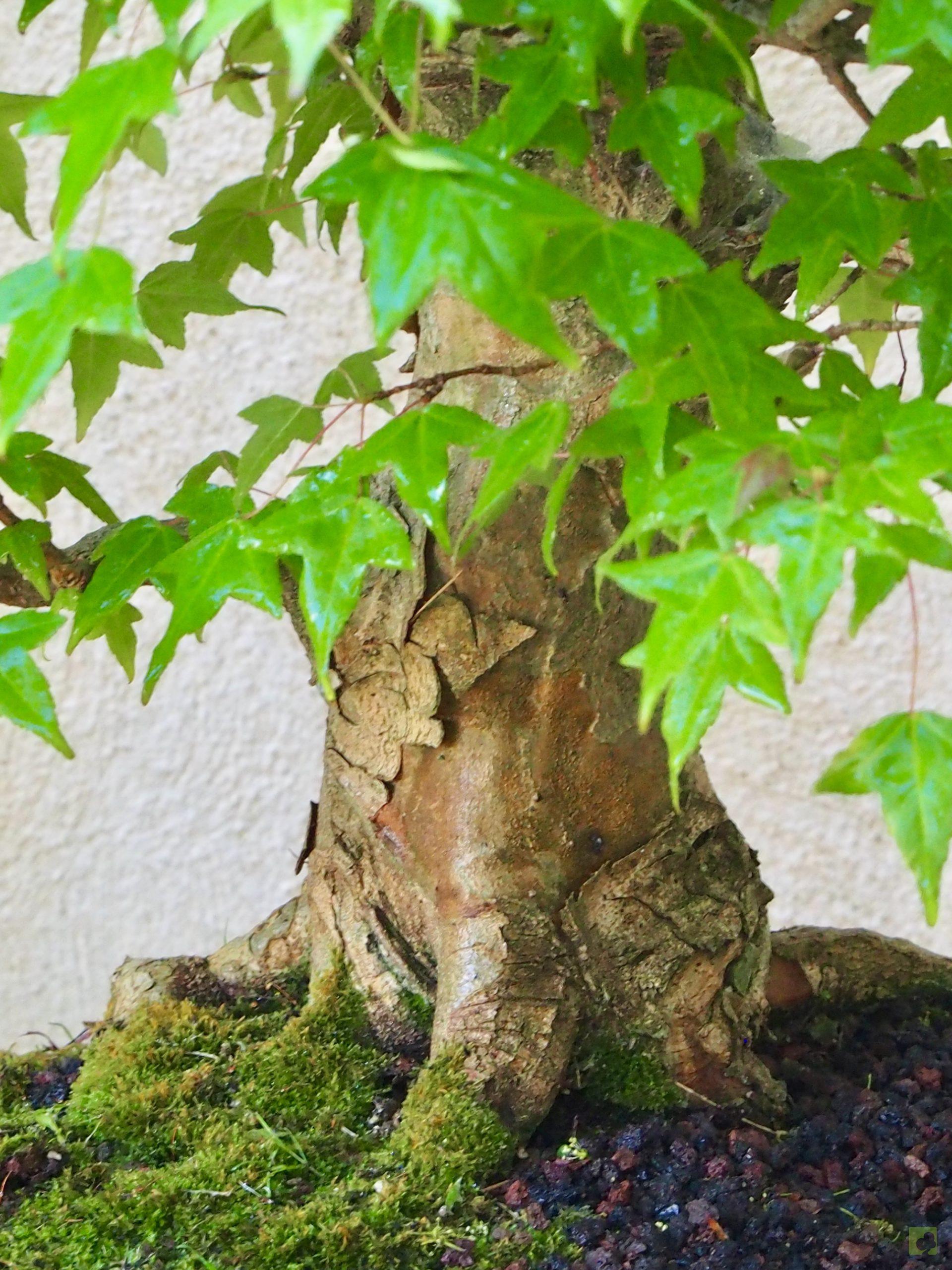 – Poda: Debido a que las yemas son opuestas, los brotes serán dobles y, por tanto, debemos fijarnos en la dirección que nos interesa para la nueva rama y eliminar el brote no deseado. Esta técnica nos permitirá un aumento de ramificación en la dirección elegida. Las ramas, al igual que el tronco, son robustas por lo que siempre debemos eliminar las ramas toscas y gruesas, dejando las más finas. Este es un proceso continuo que debemos repetir estación a estación ya que es el modo de lograr una ramificación fina y delicada. En el segundo año, también en invierno, deben podarse las ramas que nazcan directamente del tronco y afeen la silueta del árbol, utilizando una buena pasta selladora. Crece rápido y obliga a un despunte frecuente, de 2 yemas. Hacer 3 ó 4 despuntes en el transcurso del verano. Esto permite obtener unos arbolitos bien tupidos. Es muy peligroso para la vida del arce podar ramas gruesas fuera del invierno. En verano puede realizarse el defoliado total o parcial sin demasiados problemas, siempre que no se lleve a cabo demasiado tarde dentro de la estación. Por otra parte, es necesario, al principio, dejar que las ramas bajas crezcan libremente para que así engorden y lograr un crecimiento adecuado de esta zona baja.