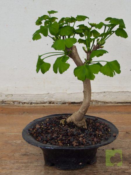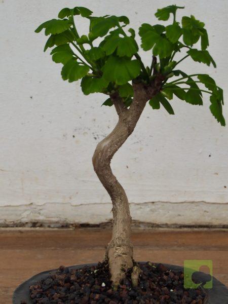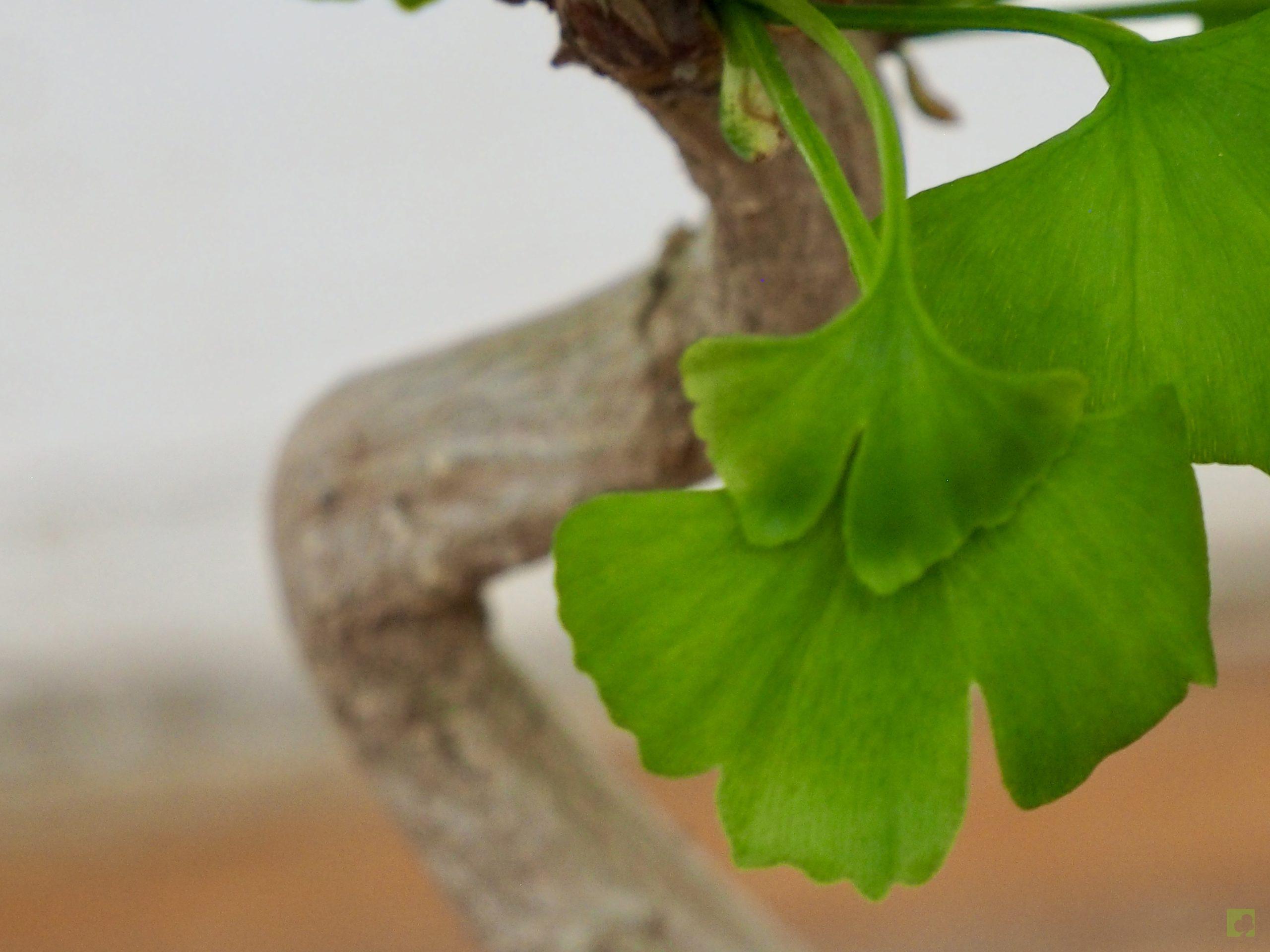 Las hojas, de color verde claro y de entre 5-15 cm, estas son planas en forma de abanico con nervadura dicotómica; las nacidas en los brotes largos suelen presentar muescas o lóbulos.