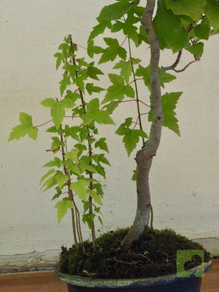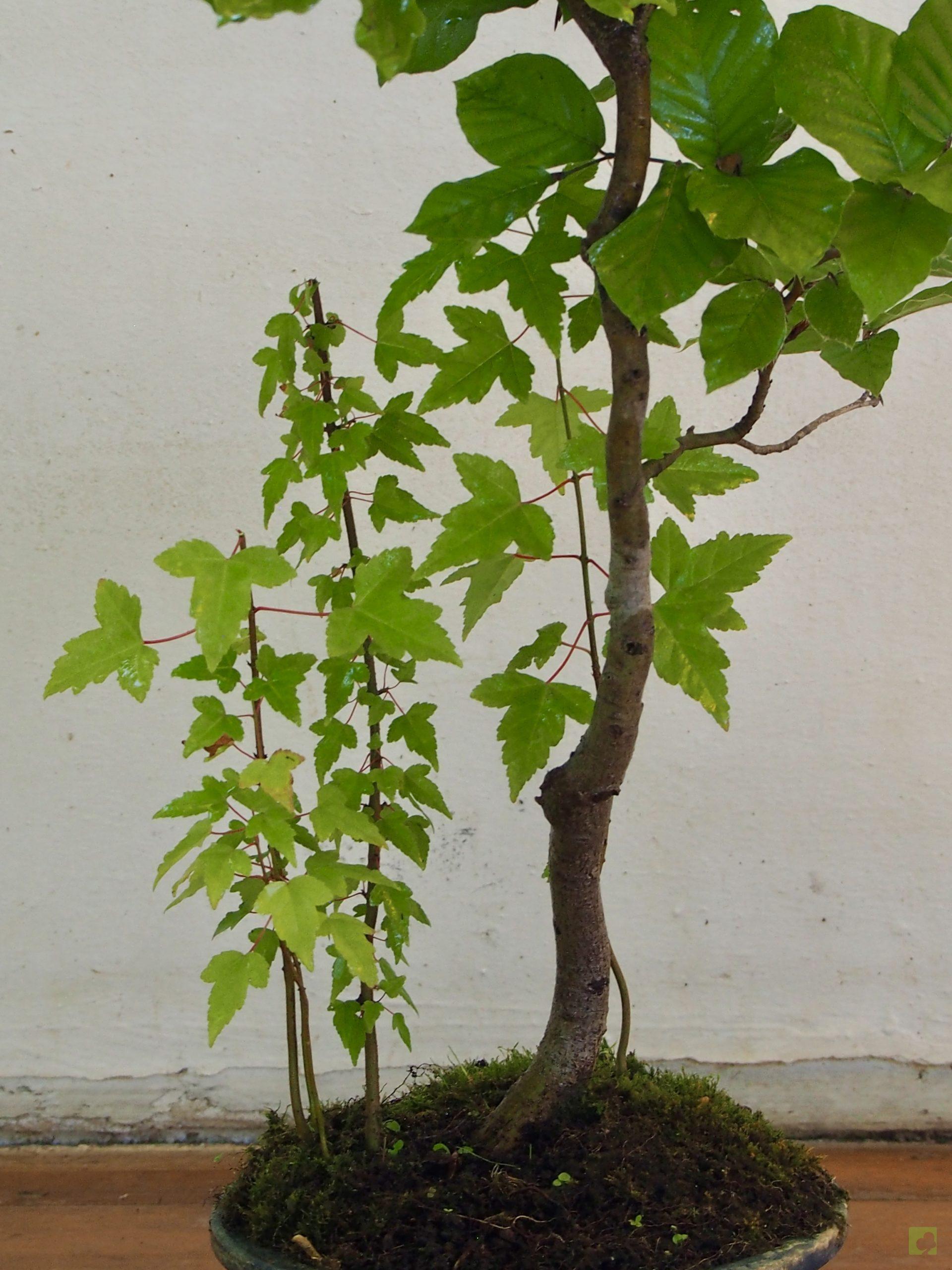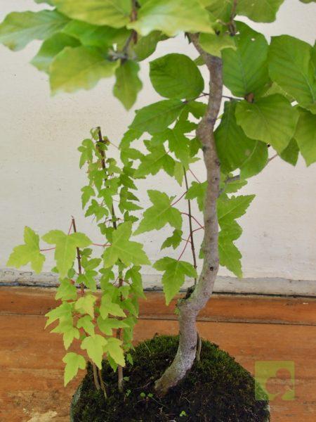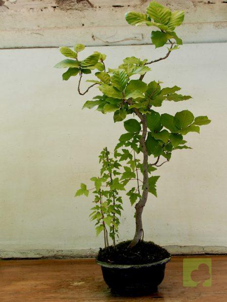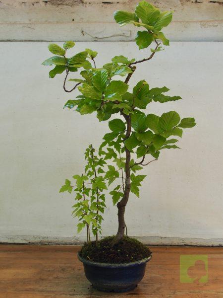 Bonsai de Haya de 12 años de edad, con bosque de Arces Burgerianos.