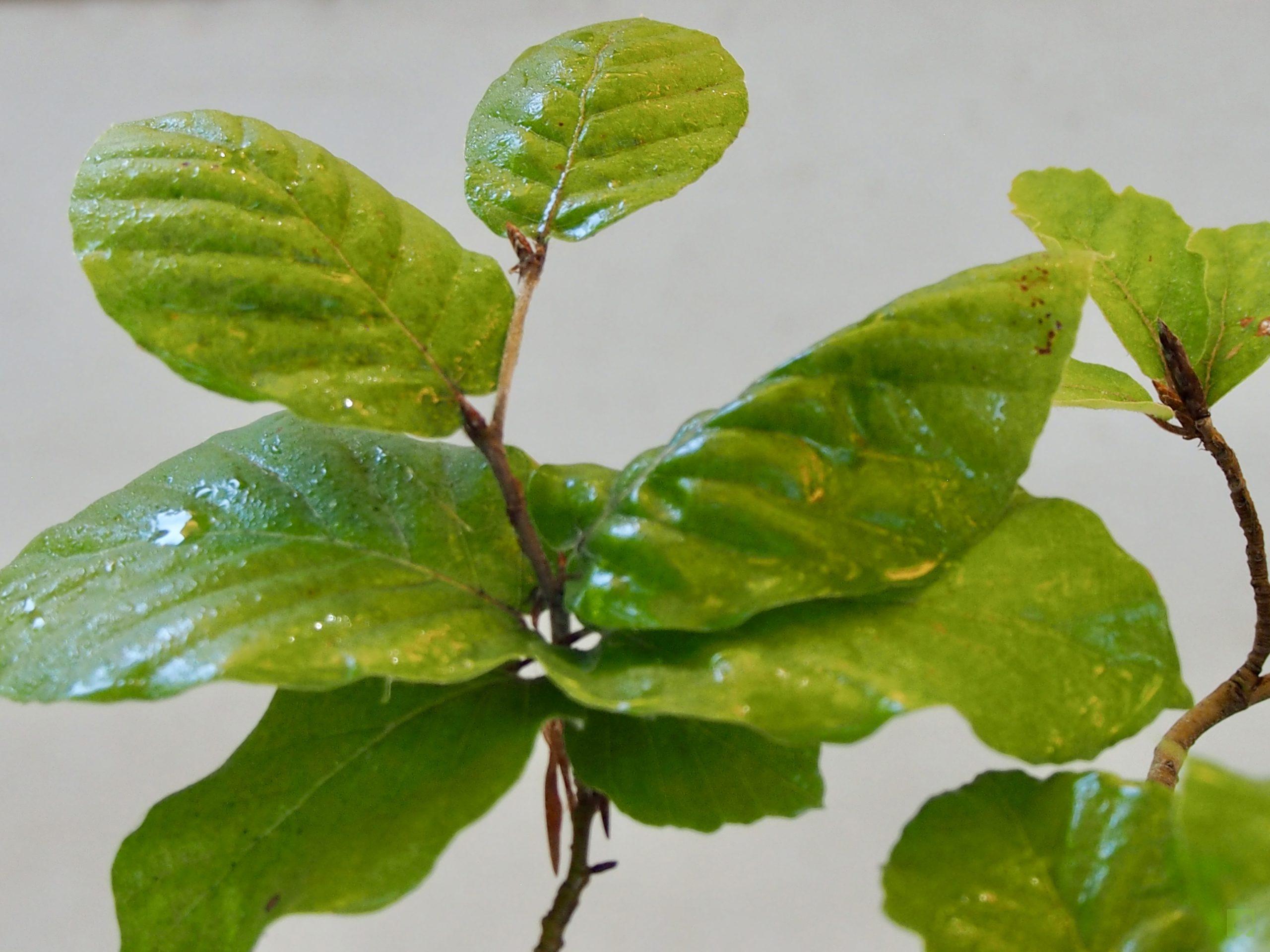 – Las hojas son ovaladas, con el borde ondulado, algo dentado, con vello cuando son jóvenes, incluso en los nervios. Son alternas, dispuestas en dos hileras y pueden tener entre 5-10 cm de largo.
