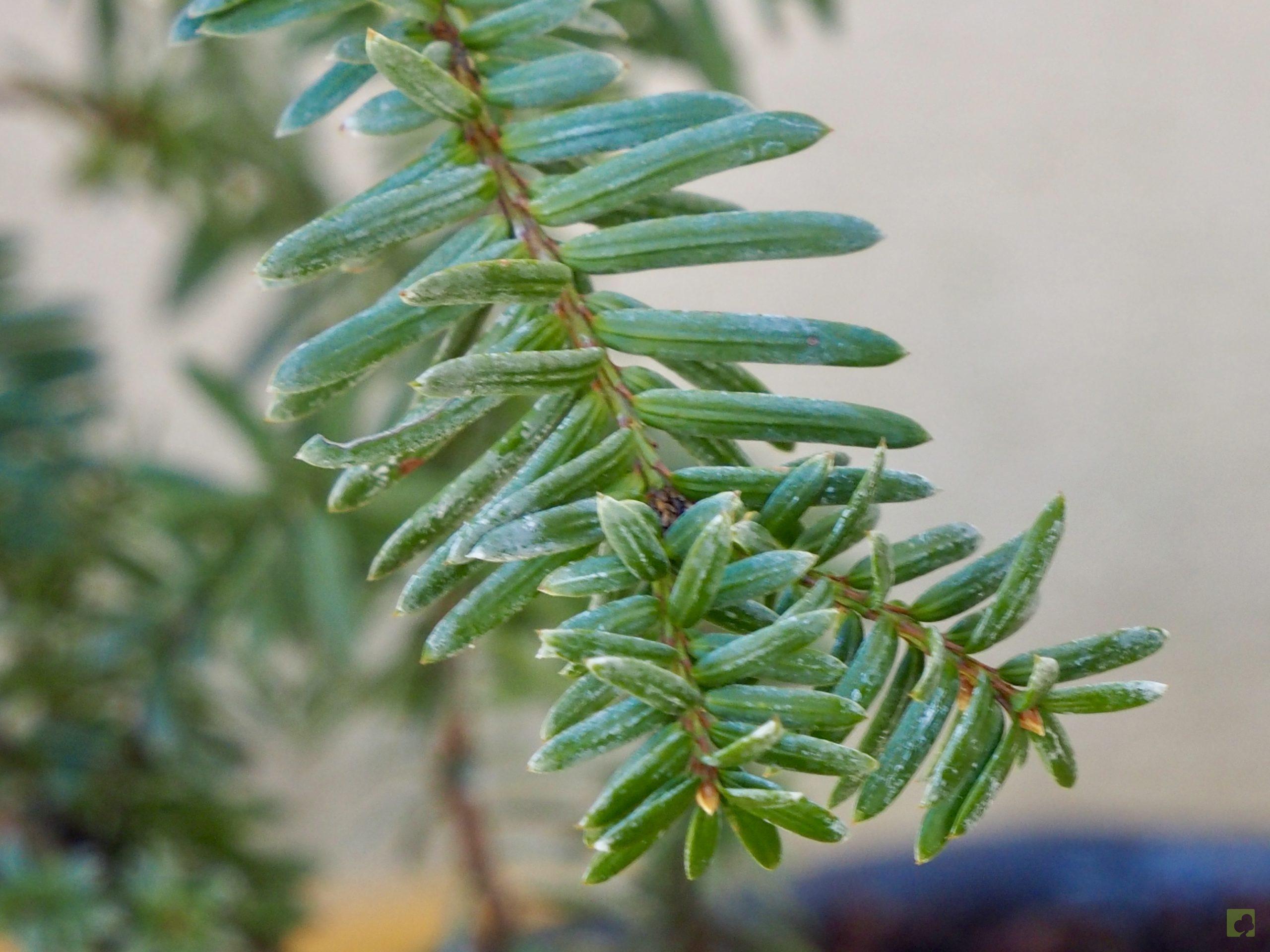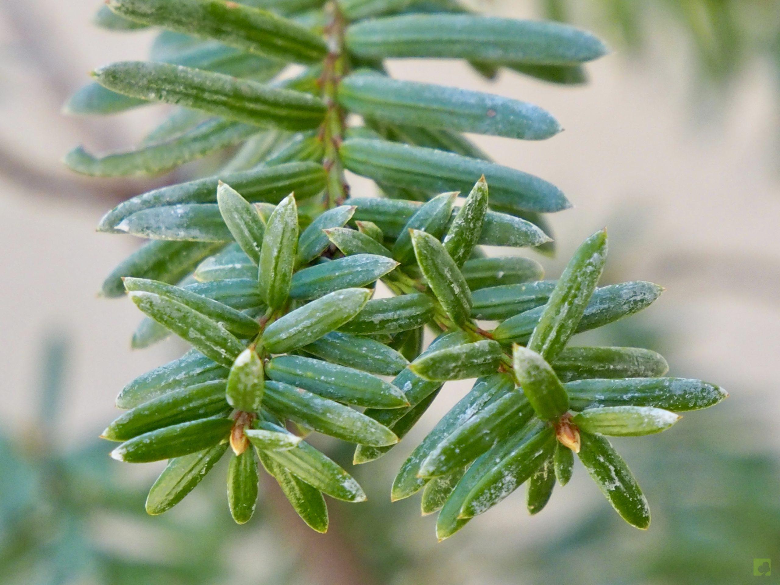 – El Tejo japonés, como su nombre indica, procedente de Japón, Corea y Manchuria, se distingue del tejo común por sus hojas en forma de hoz, provistas de un botón oscuro en el ápice.