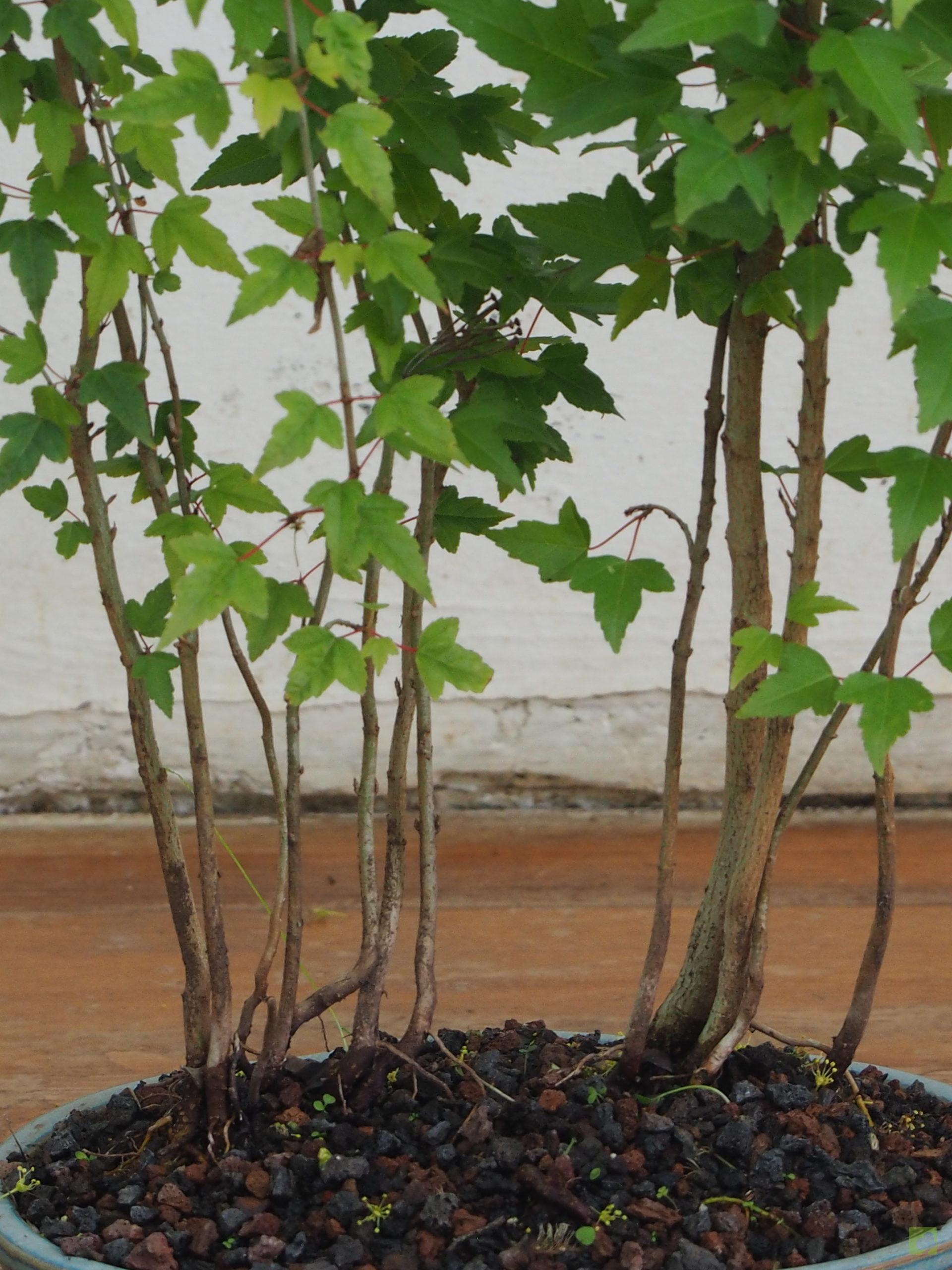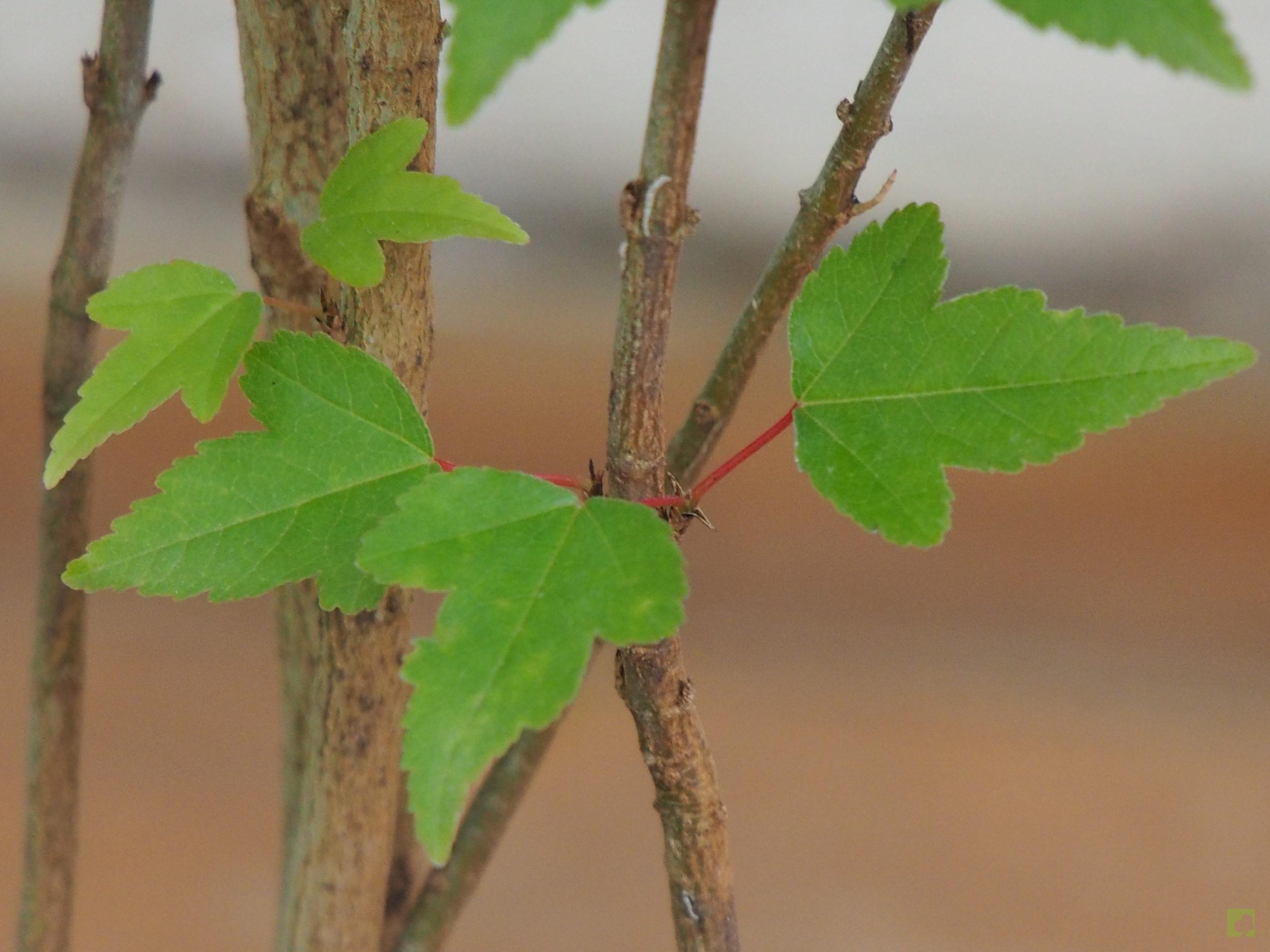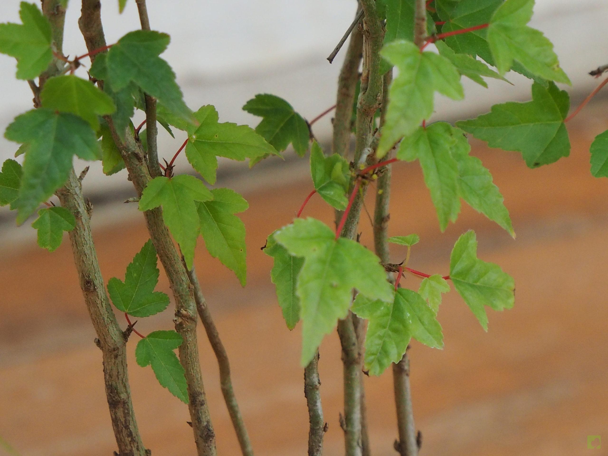 – Poda: Debido a que las yemas son opuestas, los brotes serán dobles y, por tanto, debemos fijarnos en la dirección que nos interesa para la nueva rama y eliminar el brote no deseado. Esta técnica nos permitirá un aumento de ramificación en la dirección elegida. Las ramas, al igual que el tronco, son robustas por lo que siempre debemos eliminar las ramas toscas y gruesas, dejando las más finas. Este es un proceso continuo que debemos repetir estación a estación ya que es el modo de lograr una ramificación fina y delicada. En el segundo año, también en invierno, deben podarse las ramas que nazcan directamente del tronco y afeen la silueta del árbol, utilizando una buena pasta selladora. Crece rápido y obliga a un despunte frecuente, de 2 yemas. Hacer 3 ó 4 despuntes en el transcurso del verano. Esto permite obtener unos arbolitos bien tupidos. Es muy peligroso para la vida del arce podar ramas gruesas fuera del invierno. En verano puede realizarse el defoliado total o parcial sin demasiados problemas, siempre que no se lleve a cabo demasiado tarde dentro de la estación. Por otra parte, es necesario, al principio, dejar que las ramas bajas crezcan libremente para que así engorden y lograr un crecimiento adecuado de esta zona baja.