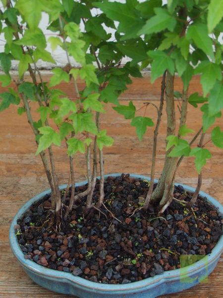 – Trasplante: Cada 2 años, y los árboles muy jóvenes anualmente. Se efectúa justo después de la caída de las hojas o antes de la brotación de las yemas. Durante el trasplante se deben las raíces podridas y eliminar bien toda la tierra vieja. Cuando la base del tronco esté limpia y a la vista, se podan completamente las raíces que nazcan directamente de dicha base. En los sucesivos trasplantes de nuestro arce debemos ir eliminando las raíces que crecen hacia abajo, dejando sólo las que crecen en horizontal, conseguiremos de esta forma una interesante base de raíces. Tras la poda de raíces está débil, por lo que no le conviene sufrir heladas. Por este motivo, se recomienda hacerlo a finales de invierno o principios de primavera.
