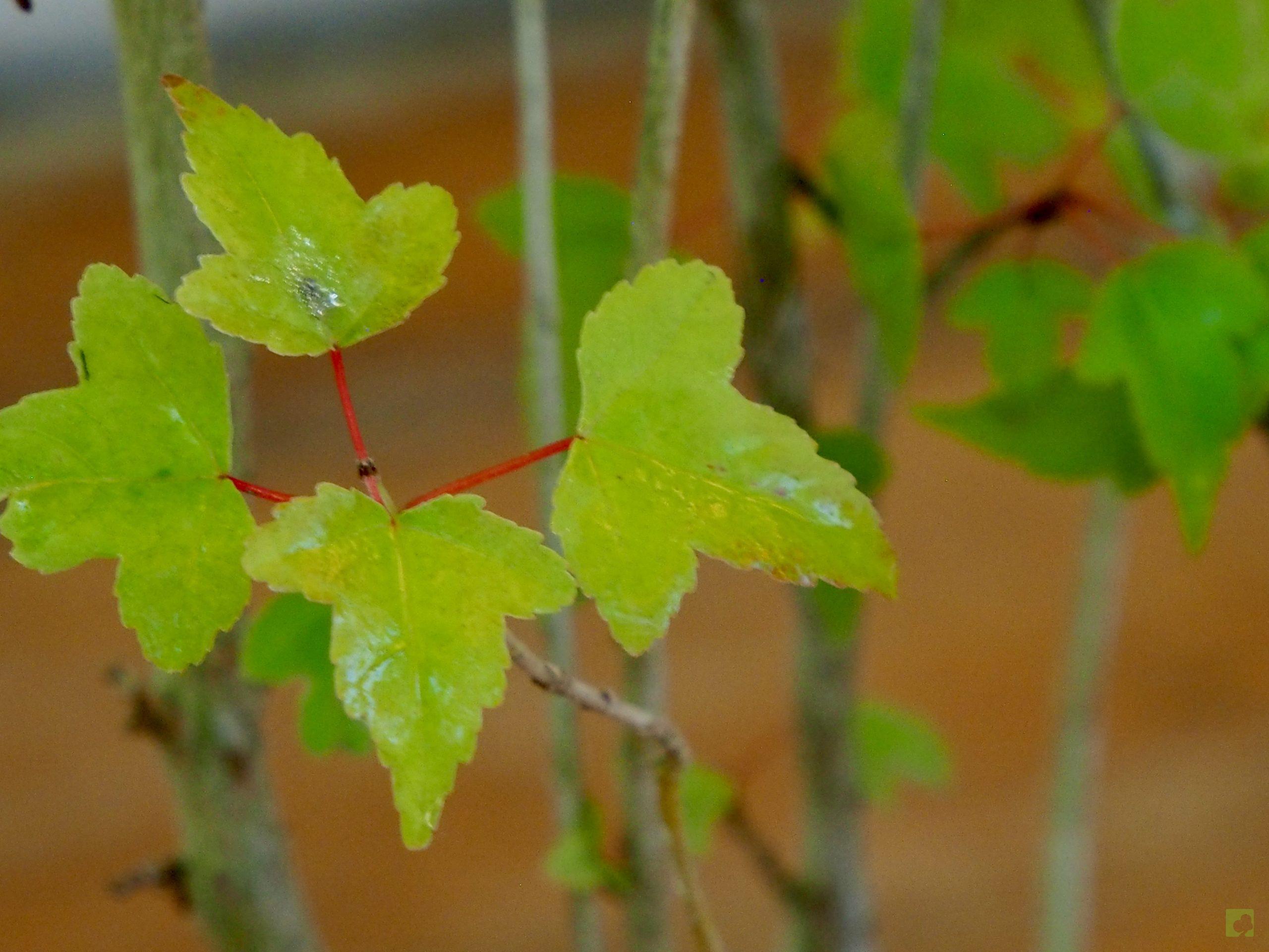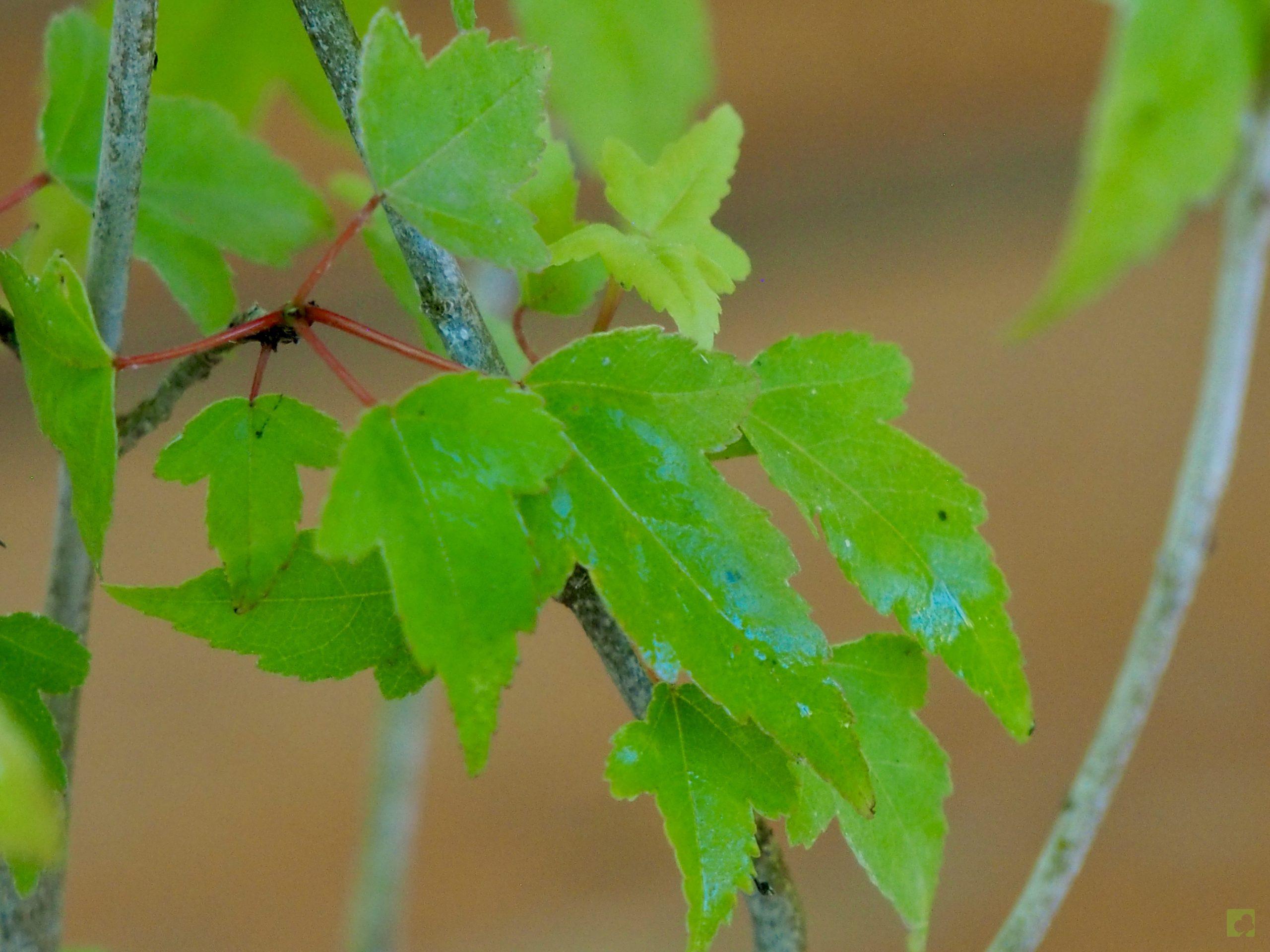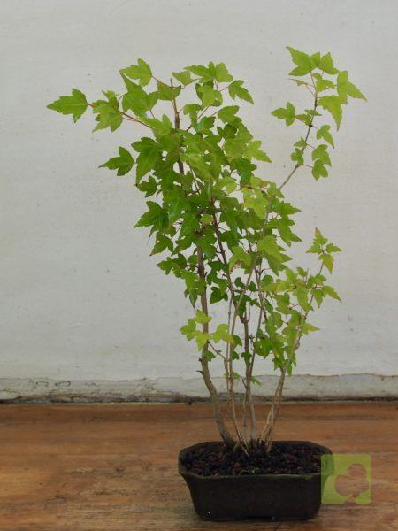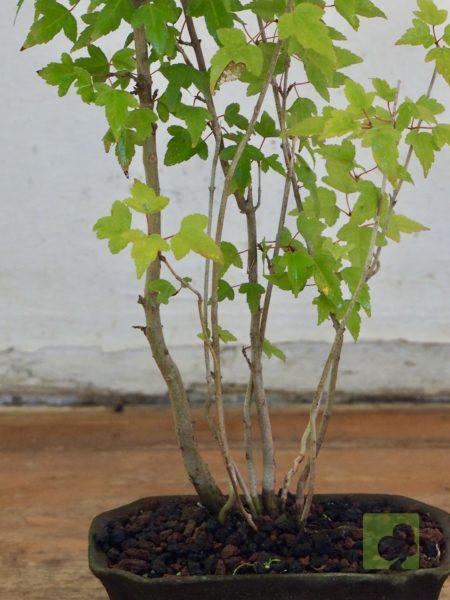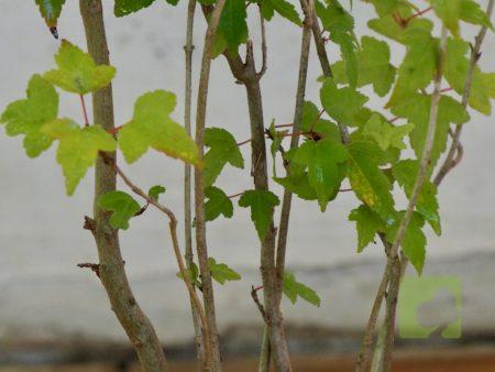– Poda: Debido a que las yemas son opuestas, los brotes serán dobles y, por tanto, debemos fijarnos en la dirección que nos interesa para la nueva rama y eliminar el brote no deseado. Esta técnica nos permitirá un aumento de ramificación en la dirección elegida. Las ramas, al igual que el tronco, son robustas por lo que siempre debemos eliminar las ramas toscas y gruesas, dejando las más finas. Este es un proceso continuo que debemos repetir estación a estación ya que es el modo de lograr una ramificación fina y delicada. En el segundo año, también en invierno, deben podarse las ramas que nazcan directamente del tronco y afeen la silueta del árbol, utilizando una buena pasta selladora. Crece rápido y obliga a un despunte frecuente, de 2 yemas. Hacer 3 ó 4 despuntes en el transcurso del verano. Esto permite obtener unos arbolitos bien tupidos. Es muy peligroso para la vida del arce podar ramas gruesas fuera del invierno. En verano puede realizarse el defoliado total o parcial sin demasiados problemas, siempre que no se lleve a cabo demasiado tarde dentro de la estación. Por otra parte, es necesario, al principio, dejar que las ramas bajas crezcan libremente para que así engorden y lograr un crecimiento adecuado de esta zona baja.