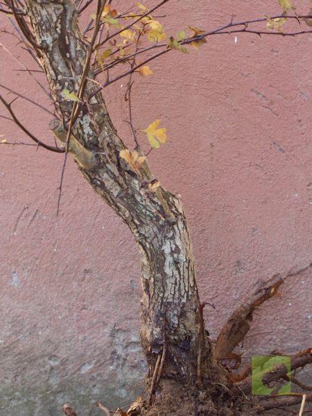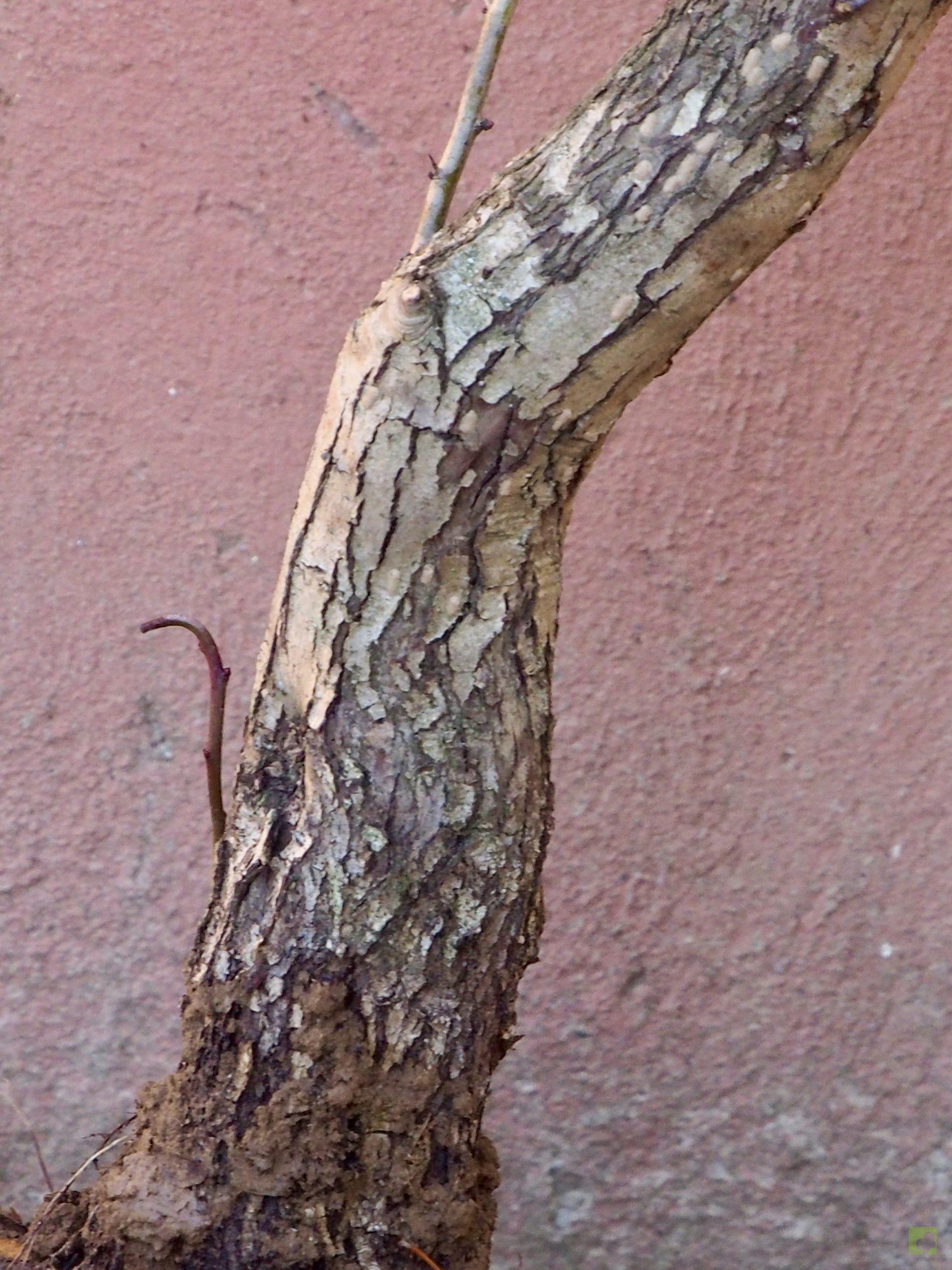 Arbusto, árbol pequeño de forma piramidal. Hojas caducas y pequeñas que lo hacen especialmente útil para bonsái. Sus flores son blancas y sus frutos son pequeños y rojos