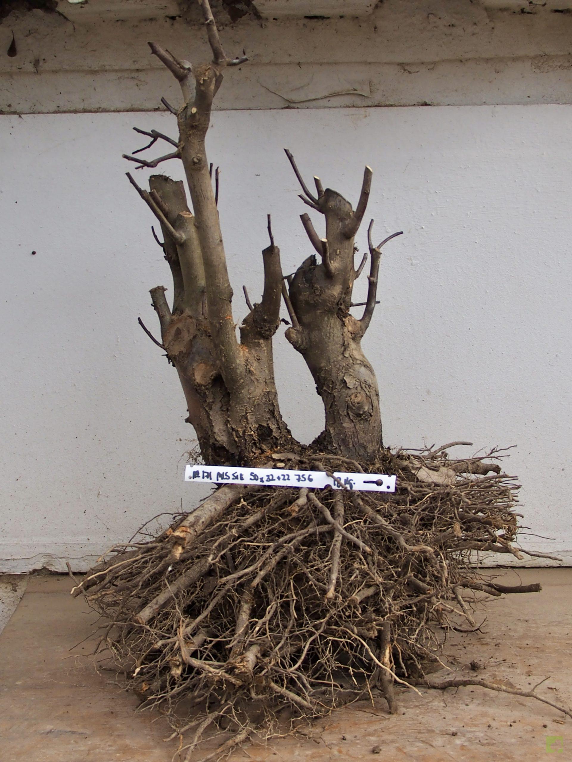 Malus sieboldii a raiz desnuda, doble tronco.