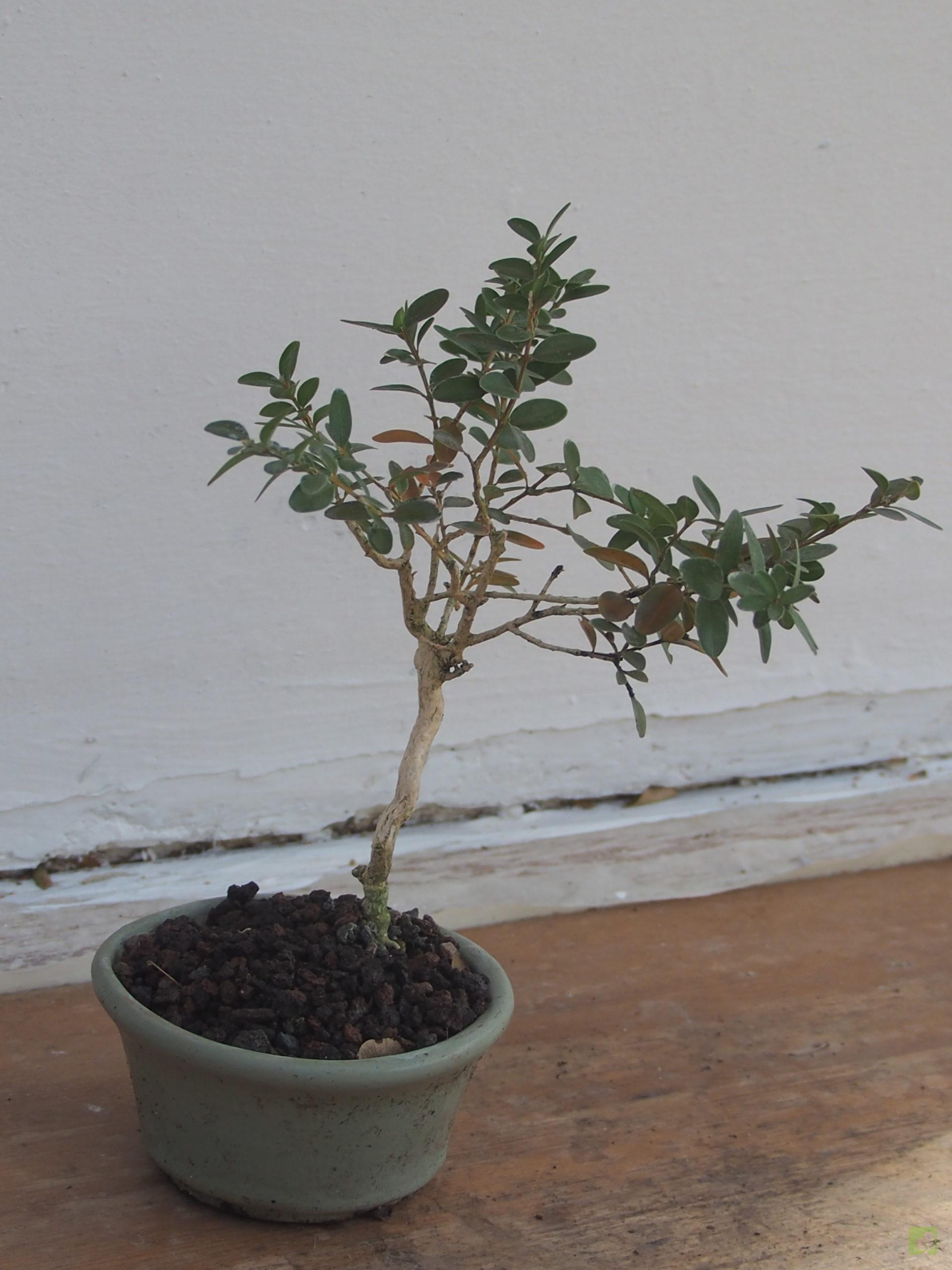 Sus hojas son enteras, opuestas y coriácia. Son de color verde oscuro lustroso por la haz y más pálidas por el envés, con los bordes ligeramente enrollados.