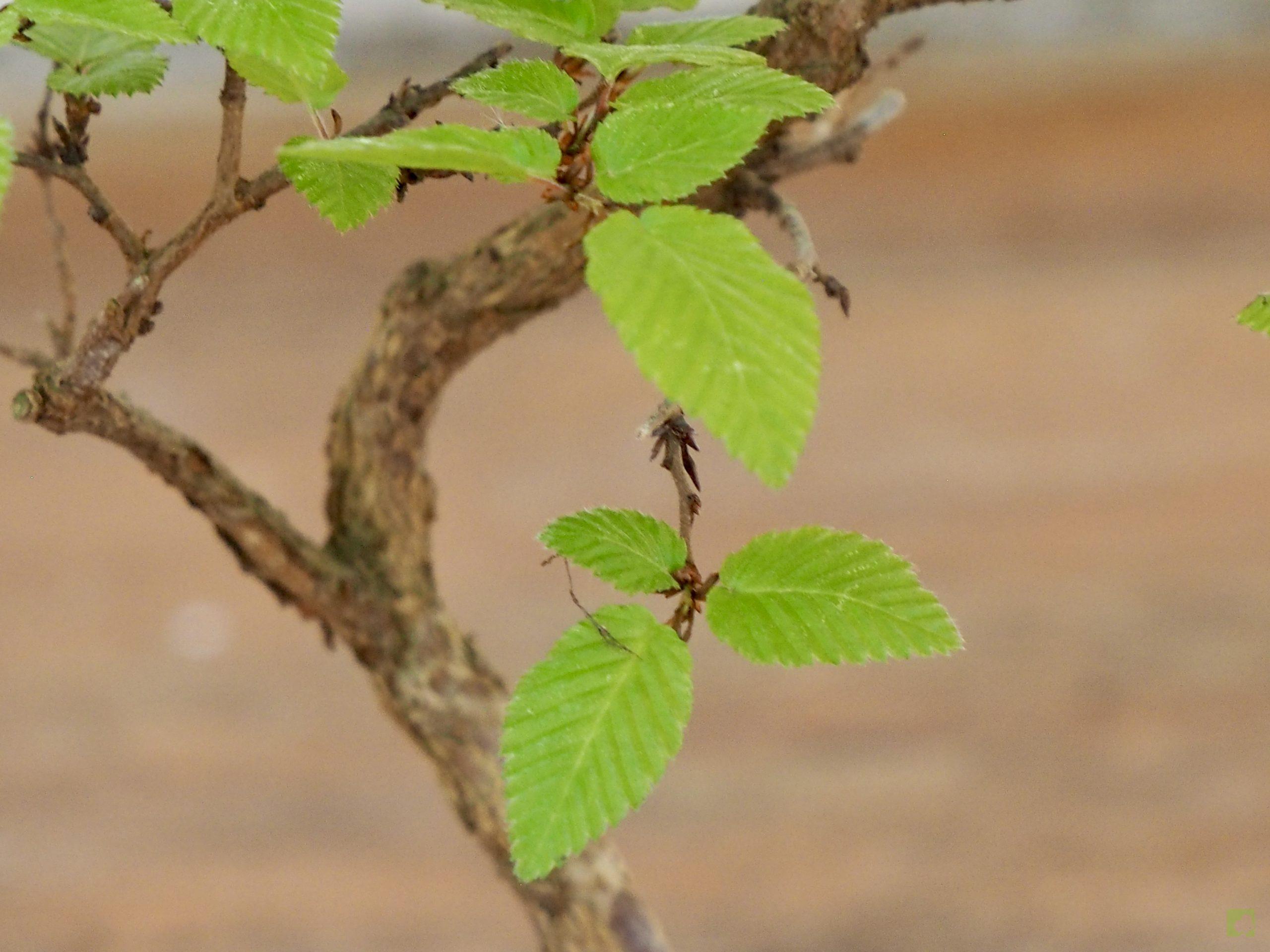 Arbol caducifolio de hojas alternas, prominentemente dentadas muy pequeñas de color verde medio claro y naranjas o rojas en otoño, suelen permanecer todo el invierno. Si los veranos son muy calurosos las hojas se queman, la corteza tiene acanaladuras de color purpura plateado.