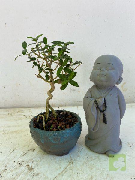 – Origen: Región Mediterránea. Actualmente se piensa que su verdadero origen puede encontrarse en Asia, concretamente en la región del Cáucaso. Debido a su vigor, resistencia, la belleza de su madera seca y la diversidad de sus formas le han hecho un clásico entre los bonsáis al olivo, siendo una de las especies más cultivadas. Crecimiento lento, pero constante. Tronco grueso que en los ejemplares viejos se retuerce y encorva de forma que alcanza tortuosidades que dejan ver que puede alcanzar el millar de años. Hojas perennes, pequeñas, alargadas y coriáceas de color verde grisáceo. Flores de color blanco. Frutos verdes o negros (las aceitunas) que oscurecen al madurar. De sus frutos se extrae el apreciado aceite de oliva. El Acebuche es una variedad silvestre del olivo, de nombre científico Olea europaea var. sylvestris. Es un arbusto algo espinoso normalmente con una altura no demasiado elevada. Sus principales diferencias con el olivo tradicional son la presencia de espinas, desaparecidas en su pariente mayor, y el reducido tamaño de sus hojas que lo convierten en una variedad especialmente apta para el cultivo como bonsái.