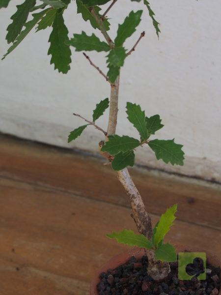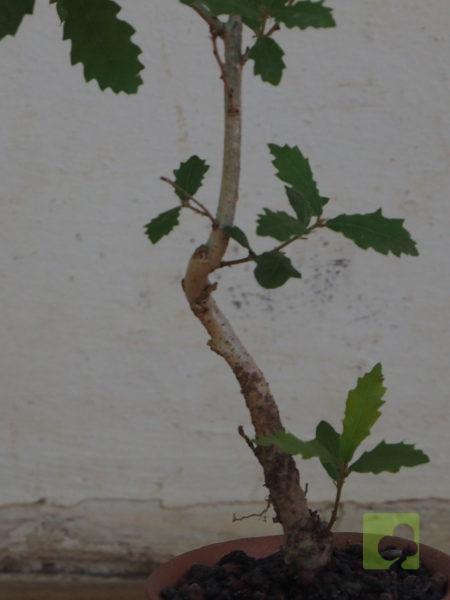 – Trasplante: Trasplante en primavera, cada 2 años los robles jóvenes, y los viejos cada 3 ó 4 años. La época de trasplante la debemos aprovechar para el trabajo de raíces, formación de raíces radiales y control de su fuerte raíz pivotante. Si bien su sistema radical tiene una fuerte tendencia pivotante es posible cortar las raíces sin demasiados riesgos pudiéndose conseguir unas buenas raíces superficiales. La raíz principal se debe acortar de forma gradual durante los trasplantes, dejando siempre un potente aparato radical. Se debe intentar conservar 1/3 del tamaño de las raíces pivotantes utilizando pasta selladora para los cortes y la mayor cantidad posible de raíces finas. En el primer trasplante no es aconsejable cortar más de 1/3. Las raíces deben ir proporcionadas al tamaño del árbol.