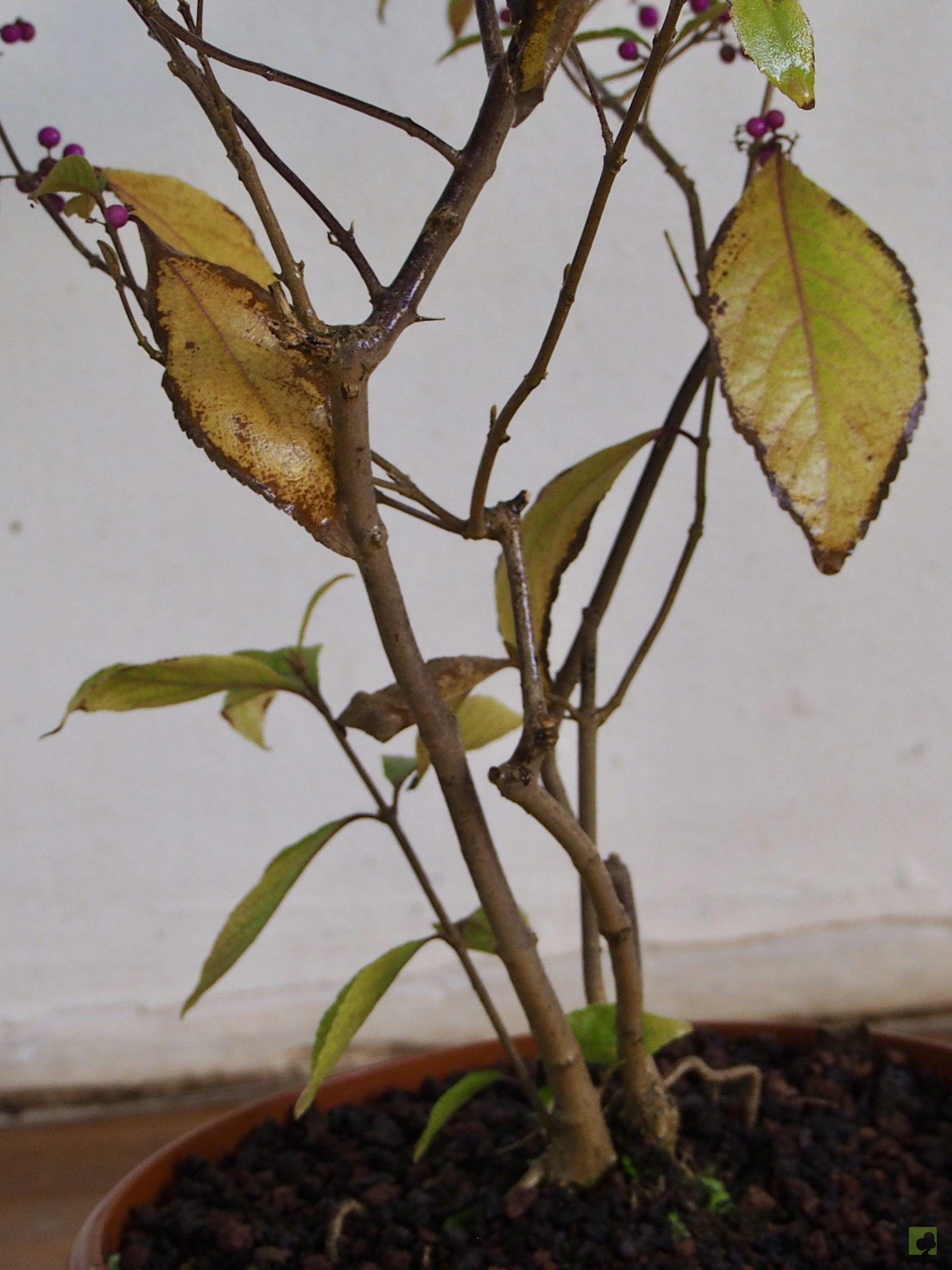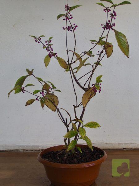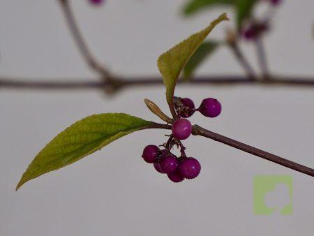Arbusto de hoja caduca. Apreciado por la coloración de sus pequeños frutos, parecidos a perlas rosa brillante.